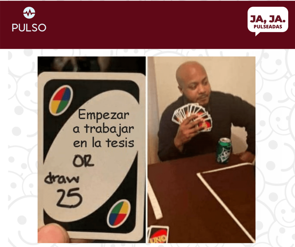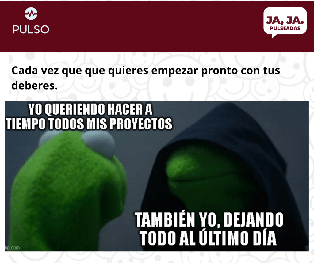Pulseadas No pares de reirte junio 9, 2021 jorelzambrano Deja un comentario Luego de una agotadora semana de exámenes, llegaron los memes, así que relájate, ponte cómodo y disfruta, ya que estos memes te pondran a reir a carcajadas Comparte esto: Compartir en X (Se abre en una ventana nueva) X Compartir en Facebook (Se abre en una ventana nueva) Facebook Compartir en WhatsApp (Se abre en una ventana nueva) WhatsApp Share on Pinterest (Se abre en una ventana nueva) Pinterest Me gusta Cargando...