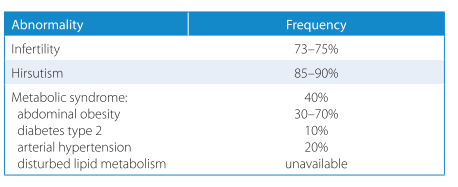 - Hiperandrogenismo, desordenes en la ovulación, pero ovarios normales detectado mediante ultrasonido.