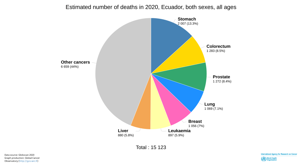 En el Ecuador representa la causa número uno de muertes por cáncer, siendo según datos del año 2021, el 13.3% de muertes por cáncer en el Ecuador lo que se traduce como 2007 defunciones.