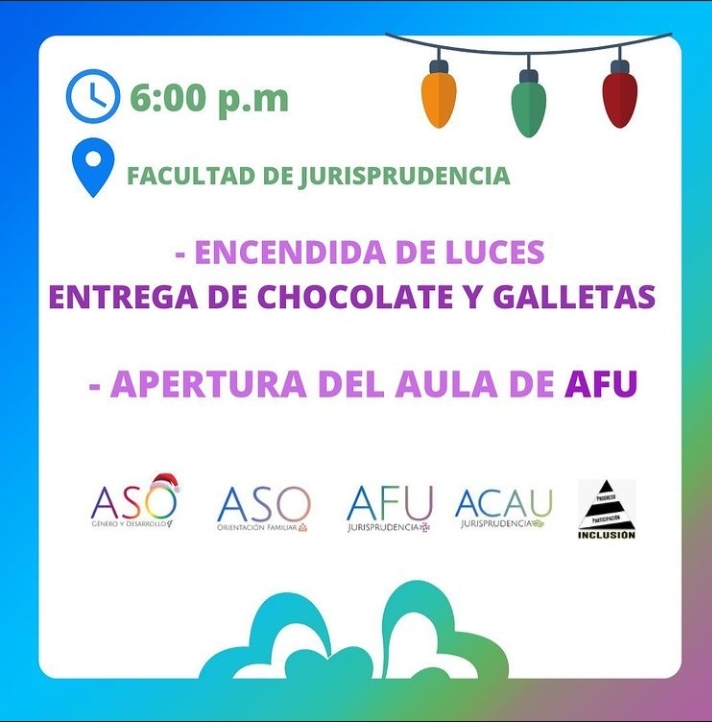 Tema: «Encendida de luces, entrega de chocolate y galletas. Apertura del aula de AFU)».