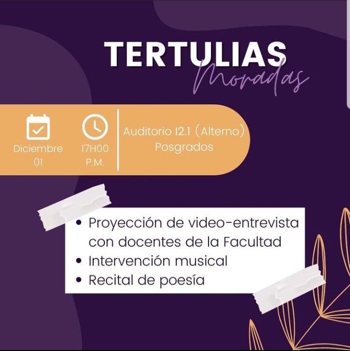 En el marco de los 16 días de activismo por la conmemoración del Día Internacional de la Eliminación de la Violencia contra la mujer, desde @afu.filo las invitamos el día Miércoles 1 de diciembre a nuestras «Tertulias moradas», un evento que representa la creación de espacios de visibilidad dentro de nuestra Facultad, que sean seguros y cómodos para nuestras compañeras.