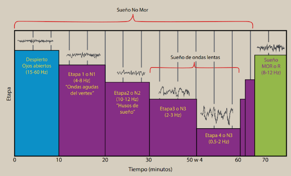 Figura 2. Las etapas o fases del sueño No-MOR y MOR y su duración.